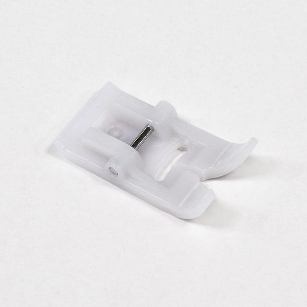 Лапка изготовлена из специального полимера, благодаря этому достигается хорошее скольжение и продвижение таких сложных материалов, как кожа, винил, замша. При шитье они могут прилипать к обычной металлической лапке, что влияет на качество строчки.