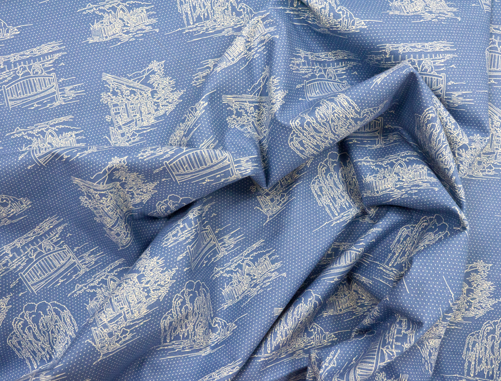 Ткань Gütermann Lizzy's Garden (очертания на синем)