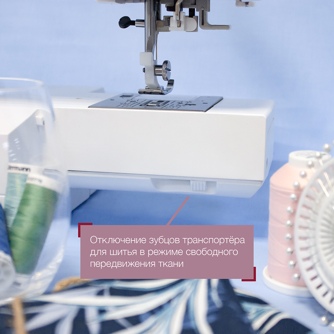 Большой набор входящих в комплект лапок позволяет выполнять все необходимые типы швейных операций: невидимую подгибку, выметывание петли в автоматическом и ручном режиме, обметывание края, вшивание молнии, выполнение декоративных строчек, а также шитье кожи и винила.