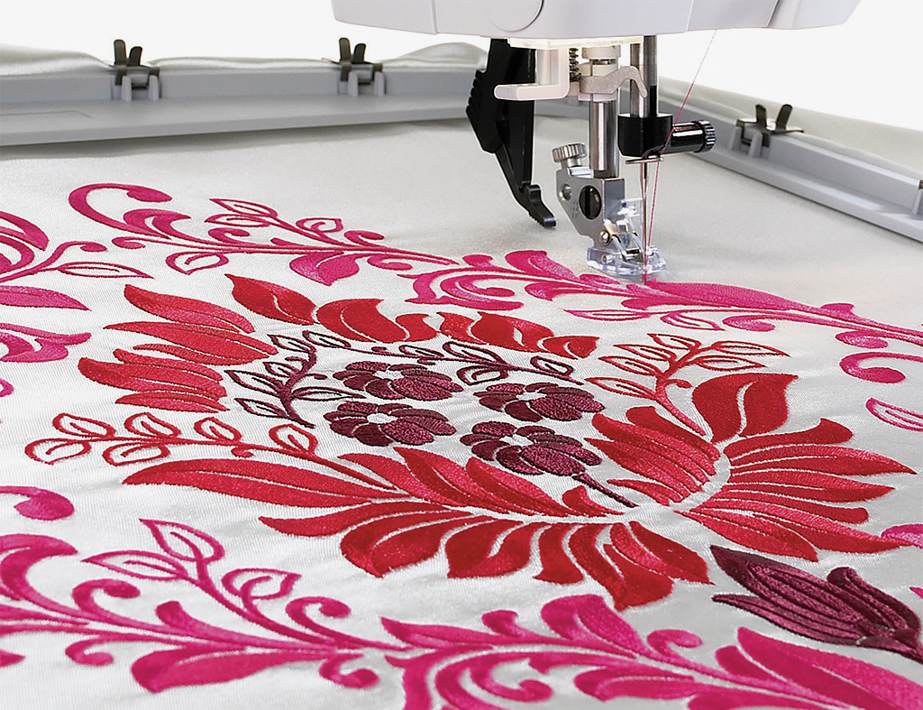 Машина способна вышивать узоры размером до 360х350 мм на самых больших доступных на сегодняшний день поворотных пяльцах, которые впервые входят в комплект к машине! Также вам будут доступны 3 вида пяльцев, которые позволяют вышивать без их снятия и поворота.