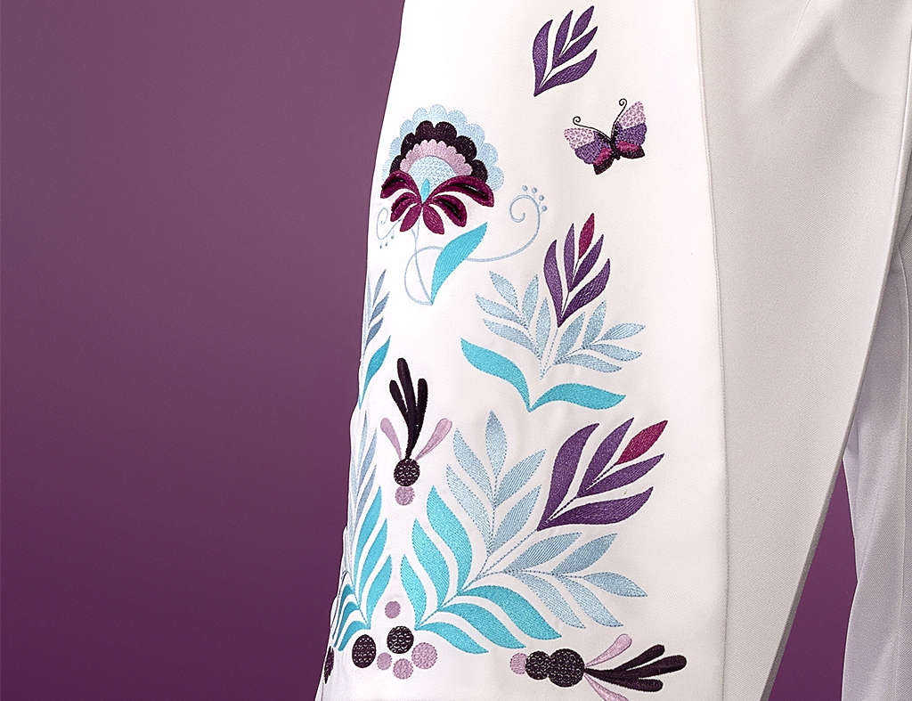 Pfaff Creative Icon 2 помогает украшать ваши проекты выразительными вышивками с использованием ленты, что открывает еще больше возможностей для творчества. И все благодаря специальному приспособлению. Выбирайте разработанные для использования с этим устройством дизайны и декорируйте ваши изделия разнообразными лентами, которые укладываются и пришиваются согласно рисунку вышивки. Другое, новое и усовершенствованное приспособление, даст возможность украшать проекты еще и бисерной нитью или пряжей.