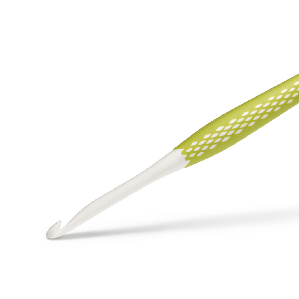 Крючок Ergonomics фирмы Prym изготовлен из высокотехнологичного синтетического материала, благодаря этому он очень легкий и приятный на ощупь. Крючки размером 6.0 - 15.0 имеют фиолетовую ручку, на конце которой указан номер для удобства поиска среди остальных вязальных принадлежностей.