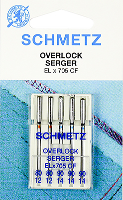 №80-90. Хромированные оверлочные иглы. В наборе 5 штук.